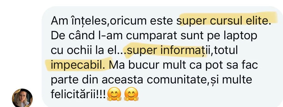 Pentru că ELITE nu îți dă doar informație; îți dă un sistem complet + drepturi de revânzare + comunitate. Asta scurtează drumul de la „vreau” la „am rezultate”.