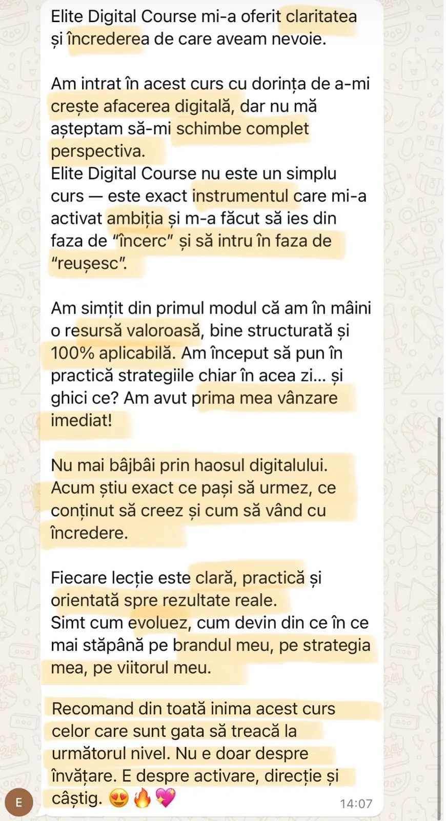 ELITE DIGITAL COURSE nu e doar un curs. E o cale.