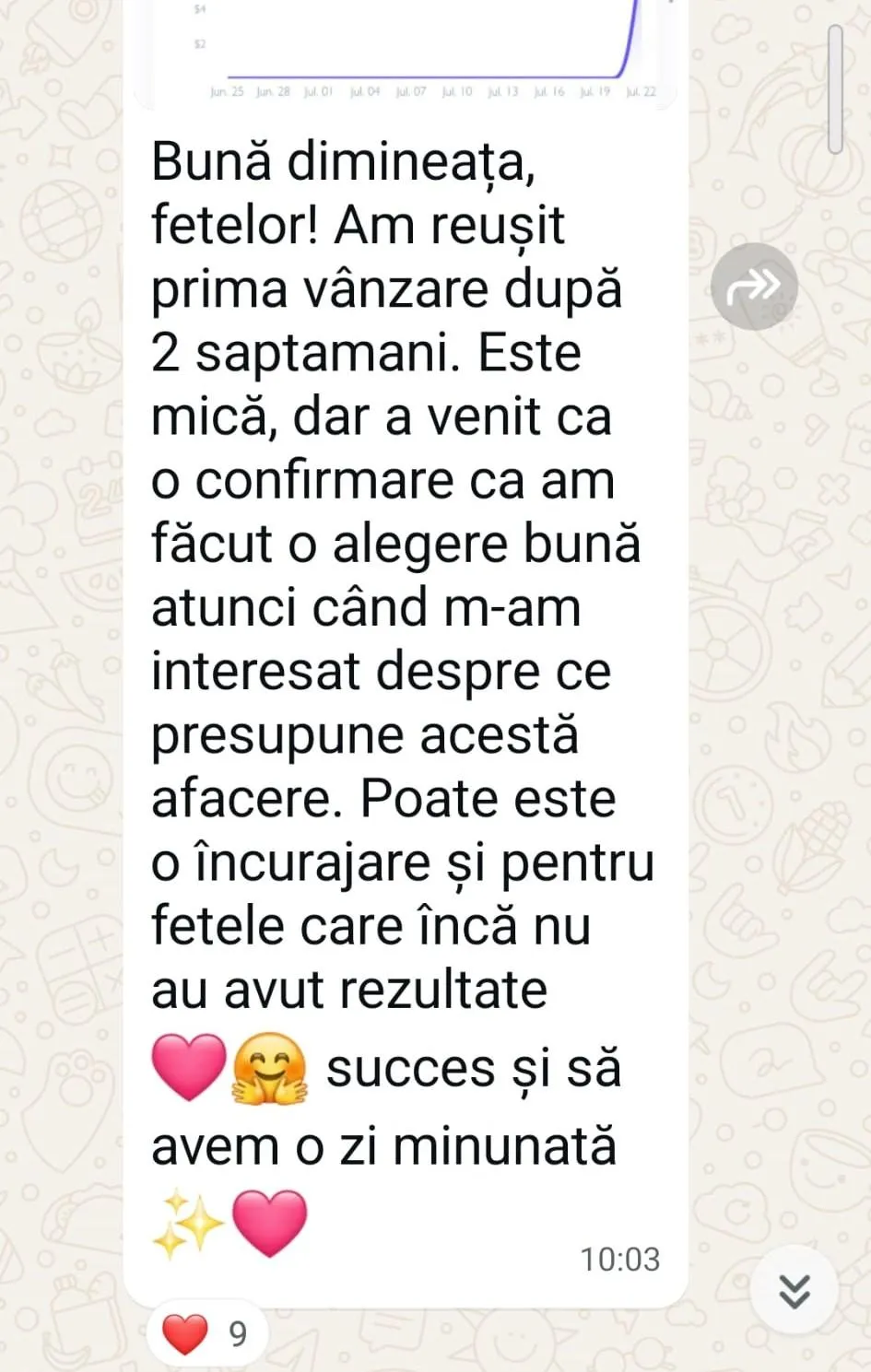 Pentru cea care vrea să vadă cum visul ei prinde formă, cum primele vânzări vin, cum încrederea crește… și cum libertatea devine, pas cu pas, realitate.